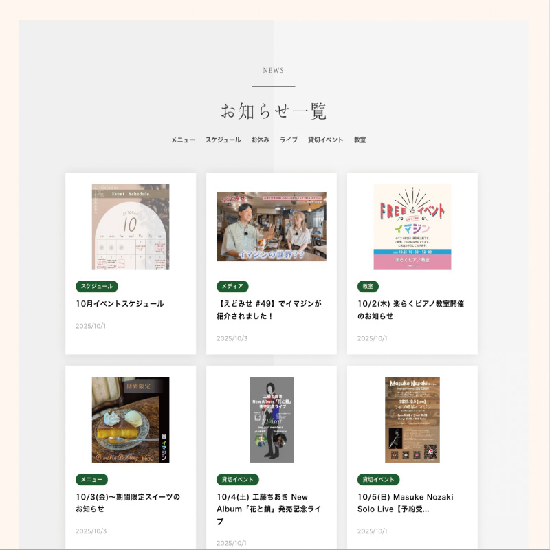 ライブ喫茶イマジン様のWebサイトをSTUDIOで制作しました。